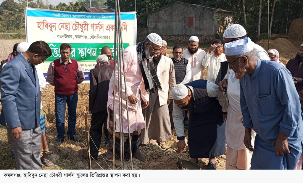 কমলগঞ্জ উপজেলার পতনঊষারে নারী শিক্ষার প্রসার ও এলাকার শিক্ষা উন্নয়নের লক্ষ্যে নবপ্রতিষ্ঠিত হাবিবুন নেছা চৌধুরী গার্লস একাডেমির আনুষ্ঠানিক ভিত্তিপ্রস্তর স্থাপন করা হয়েছে। ২৩ ডিসেম্বর বুধবার সকাল ১১ টায় প্রতিষ্ঠানের আনুষ্ঠানিক ভিত্তিপ্রস্তর স্থাপন করা হয়। ভিত্তিপ্রস্তর এর আনুষ্ঠানিক শুভসূচনা করেন শায়খুল হাদীস মুফতি মুশাহিদ আলী ক্বাসেমী। এসময় ভিত্তিপ্রস্তর অনুষ্ঠানে উপস্থিত ছিলেন পতনঊষার ইউনিয়ন পরিষদের চেয়ারম্যান অলি আহমদ খান, সাংবাদিক সমিতি কমলগঞ্জ ইউনিটের সভাপতি নূরুল মোহাইমিন মিল্টন, শিক্ষক ফয়েজুর রহমান চৌধুরী, সমাজ সেবক জহুর আলী, পতনঊষার ইউপি সদস্য তোয়াবুর রহমান তবারক, আব্দুল হান্নান, সমাজ সেবক সুলেমান আহমেদ, যুক্তরাজ্য প্রবাসী আলমগীর চৌধুরী, ইমদাদ রাহাতসহ এলাকার বিভিন্ন সামাজিক ও রাজনৈতিক ব্যাক্তিবর্গ। ভিত্তিপ্রস্তরের প্রারম্ভে সংক্ষিপ্ত আলোচনা শেষে দোয়া মাহফিল অনুষ্ঠিত হয়।