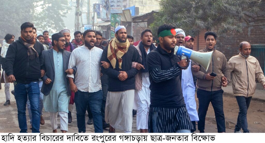 হাদি হত্যার বিচারের দাবিতে গঙ্গাচড়ায় ছাত্র-জনতার বিক্ষোভ