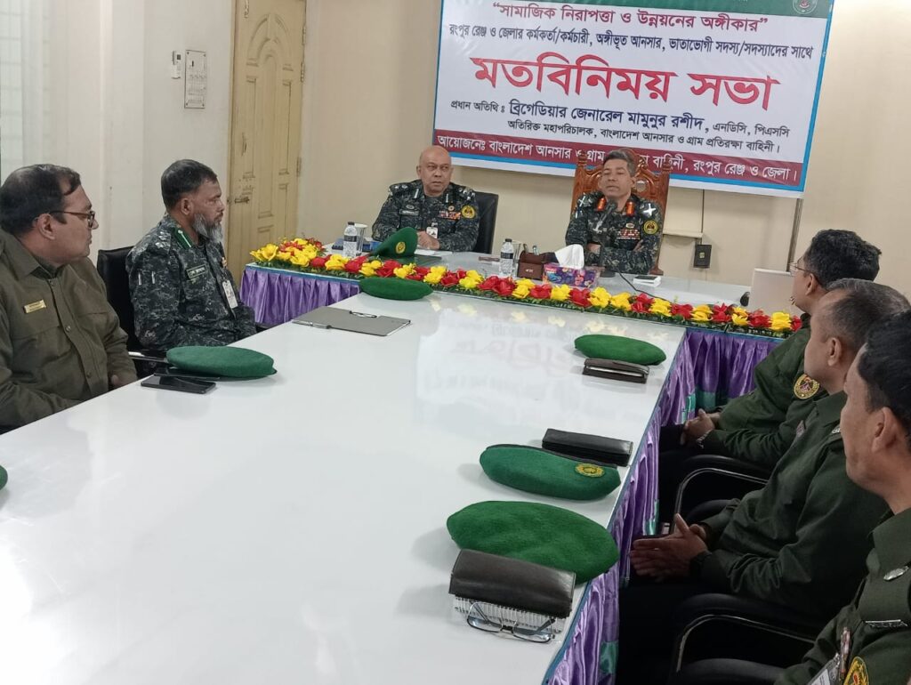 মতবিনিময় সভায় রংপুর রেঞ্জের উপমহাপরিচালক মোহাম্মদ আবদুল আউয়াল, বিভিএম, পিভিএমএস-এর সভাপতির বক্তব্যে উপমহাপরিচালক বলেন বাংলাদেশ আনসার ও গ্রাম প্রতিরক্ষা বাহিনী দেশের আইনশৃঙ্খলা রক্ষা, নির্বাচনকালীন নিরাপত্তা এবং জনসচেতনতা সৃষ্টিতে অত্যন্ত গুরুত্বপূর্ণ ভূমিকা রাখবে।