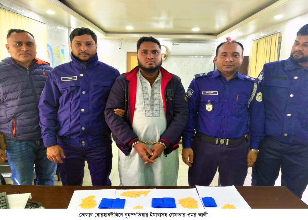 ভোলার বোরহানউদ্দিনে ৯৫০ পিস ইয়াবাসহ ওমর আলী (২৭) নামের এক ইয়াবা