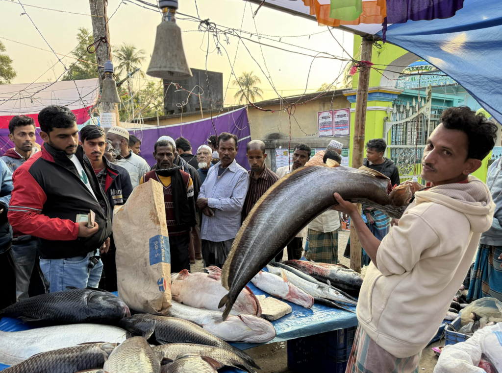 মুন্সি বাজারের মাছ বিক্রেতা সুমন মিয়া, তিনি ২৫ কেজি ওজনের বোয়াল ও বাগাইর মাছ নিয়ে মেলায় বসেছেন। মাছ দুটির দাম তিনি ৭৫ হাজার টাকা হাঁকিয়েছেন। ক্রেতারা ৩০–৩২ হাজার টাকা পর্যন্ত দর বললেও তিনি বিক্রি করেননি।