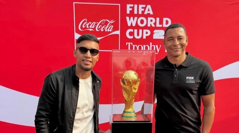 এবার ট্রফি নিয়ে ঢাকায় এসেছেন ফিফার প্রতিনিধি হিসেবে ২০০২ বিশ্বকাপজয়ী ব্রাজিল দলের সদস্য ও কিংবদন্তি ডিফেন্সিভ মিডফিল্ডার গিলবার্তো সিলভা। বিমানবন্দরে বিশ্বকাপ ট্রফি ও ব্রাজিলিয়ান তারকাকে স্বাগত জানান বাংলাদেশ জাতীয় ফুটবল দলের অধিনায়ক জামাল ভূঁইয়া।