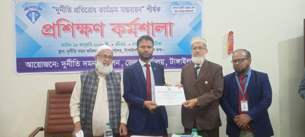 রোববার টাঙ্গাইল জেলা দুর্নীতি দমন কমিশন (দুদক) কার্যালয়ের উদ্যোগে কার্যালয়ের সম্মেলন কক্ষে এ প্রশিক্ষণ কর্মশালার আয়োজন করা হয়।