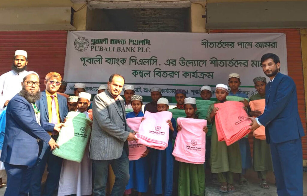 সরকারি ও বেসরকারিভাবে শীতবস্ত্র বিতরণের অংশ হিসেবে পূবালী ব্যাংক পিএলসির পক্ষ থেকে রবিবার (১৮ জানুয়ারি) দিনব্যাপী সহস্রাধিক শীতার্ত মানুষকে কম্বল বিতরণ করা হয়। জেলার সদর উপজেলার পাঁচগাছীতে ১টি ও উলিপুর উপজেলার পান্ডুল ইউনিয়নের ৩টি মাদরাসা শিক্ষার্থী ও এতিম শিশুদের মাঝে প্রধান অতিথি হিসেবে এসব শীতবস্ত্র বিতরণ করেন পুবালী ব্যাংকের উপ-মহাব্যবস্থাপক ঠাকুরগাঁ আব্দুর রাজ্জাক।
