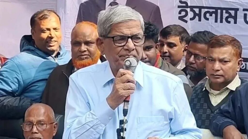 মির্জা ফখরুল বলেন, ‘আপনাদের ১৯৭১ সালের কথা মনে আছে, সেই যুদ্ধের কথা মনে আছে। আমরা নিজেরাই পাকিস্তানি বাহিনীর বিরুদ্ধে অস্ত্র হাতে নিয়ে স্বাধীনতার জন্য যুদ্ধ করেছি। কেউ বাইরে থেকে এসে আমাদের হয়ে যুদ্ধ করেনি। আমরা দেশ ছেড়ে পালিয়ে যাইনি। অথচ যারা তখন বাংলাদেশের স্বাধীনতার বিরোধিতা করেছিল, তারাই আজ দাঁড়িপাল্লা প্রতীক নিয়ে আপনাদের কাছে ভোট চাইতে আসছে। আপনারাই বিচার করুন—তারা স্বাধীনতার পক্ষে ছিল, না বিপক্ষে।’