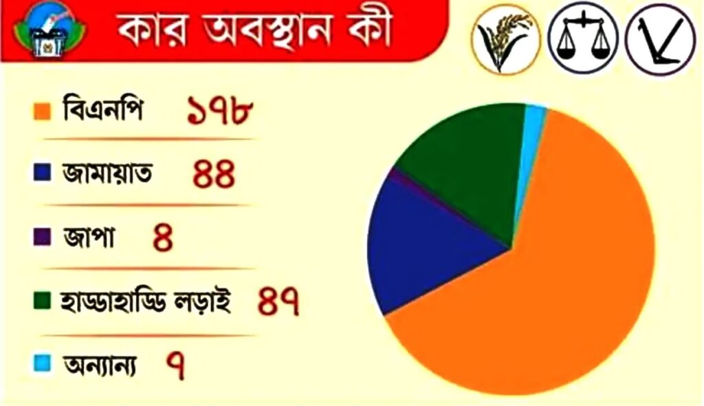 উত্তরাঞ্চল, খুলনা ও রাজশাহী বিভাগের বেশ কয়েকটি আসনে বিএনপি ও জামায়াতে ইসলামী মুখোমুখি অবস্থানে রয়েছে। কোথাও কোথাও জামায়াত এগিয়ে থাকলেও, অনেক আসনে বিএনপি সামান্য ব্যবধানে এগিয়ে রয়েছে। অন্যদিকে রংপুর, রাজশাহী ও খুলনা বিভাগের কিছু আসনে স্বতন্ত্র প্রার্থীরাও শক্ত অবস্থান গড়ে তুলেছেন।