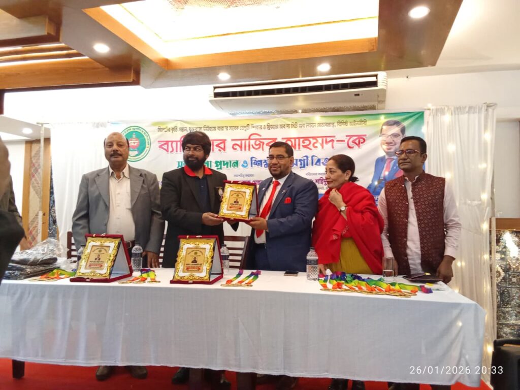 সোমবার ২৬ জানুয়ারি ২০২৬, রাত ৮ টায় সিলেট সোবহানীঘাটস্থ এক অভিজাত হোটেলে সিলেট-চট্টগ্রাম ফ্রেন্ডশিপ ফাউন্ডেশনের উদ্যোগে ব্যারিস্টার নাজির আহমদকে সংবর্ধনা এবং শিক্ষার্থীদের মধ‍্যে শিক্ষা উপকরণ বিতরণ করা হয়।