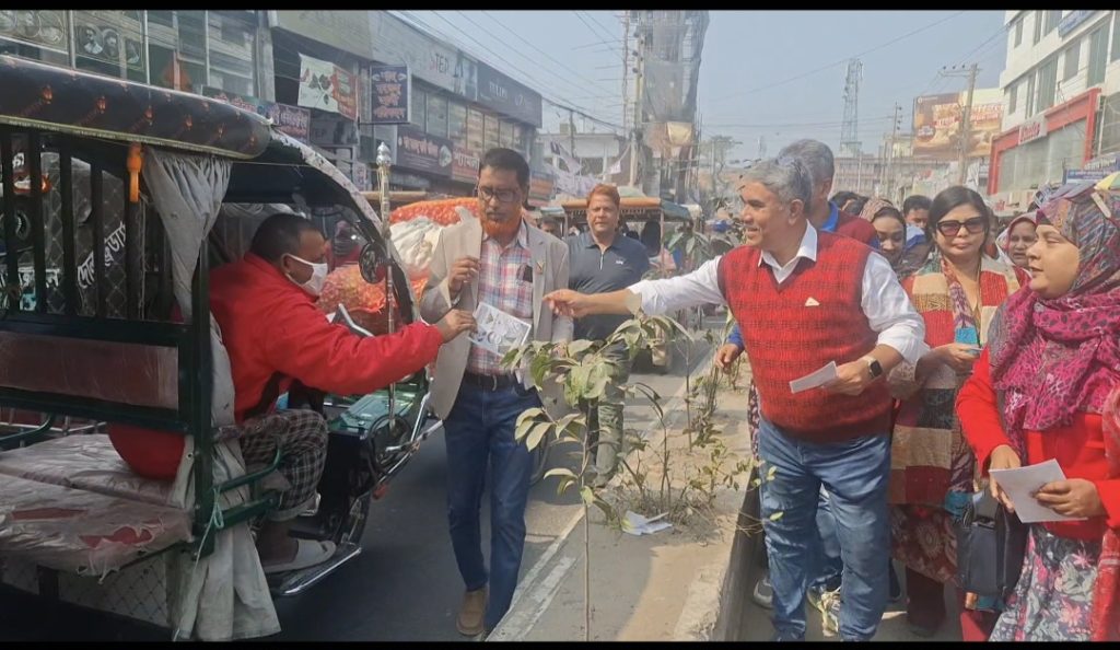 আসন্ন ত্রয়োদশ জাতীয় সংসদ নির্বাচনে জয়পুরহাট-১ (জয়পুরহাট-পাঁচবিবি) আসনে বিএনপি মনোনীত প্রার্থী মাসুদ রানা প্রধানের পক্ষে ধানের শীষ প্রতীকে ভোট চেয়ে গণসংযোগ, মিছিল ও লিফলেট বিতরণ করলেন রাজশাহী বিভাগীয় সহ-সাংগঠনিক সম্পাদক ওবায়দুর রহমান চন্দন।