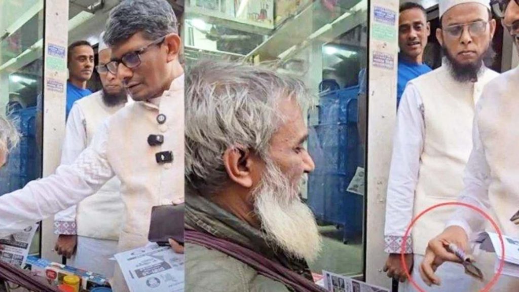 কথা শেষ করে বিদায়ের সময় তিনি ওই বিক্রেতার হাতে এক হাজার টাকার একটি নোট তুলে দেন—যা নিয়েই মূলত শুরু হয়েছে বিতর্ক।