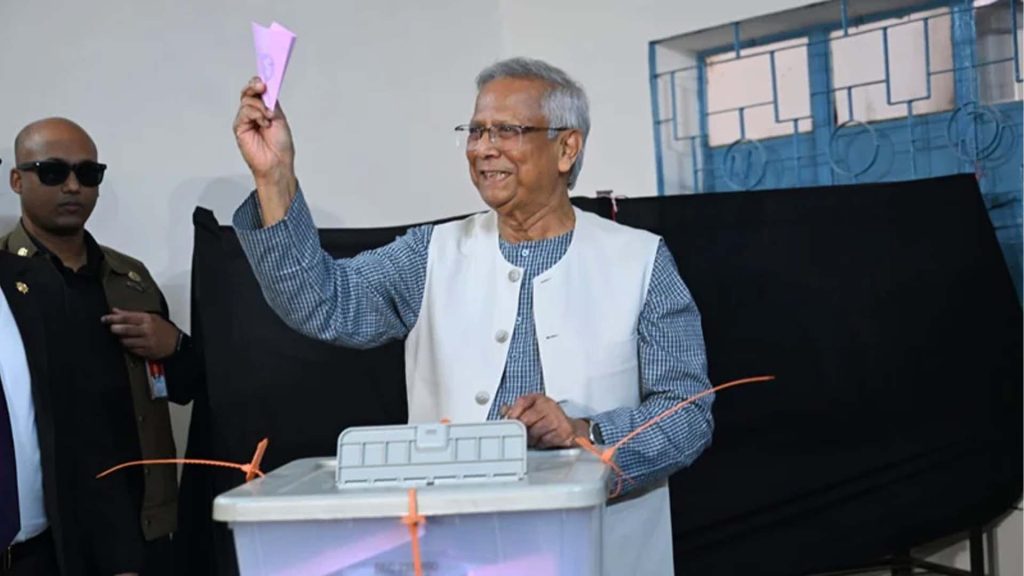 ত্রয়োদশ জাতীয় সংসদ নির্বাচন ও গণভোটে নিজের ভোটাধিকার প্রয়োগ করেছেন অন্তর্বর্তীকালীন সরকারের প্রধান উপদেষ্টা অধ্যাপক ড. মুহাম্মদ ইউনূস। বৃহস্পতিবার সকাল ১০টা ২০ মিনিটে রাজধানীর গুলশান মডেল স্কুল অ্যান্ড কলেজ কেন্দ্রে তিনি ভোট প্রদান করেন এবং কেন্দ্র থেকে বের হন সকাল ১০টা ৩৭ মিনিটে। ঢাকা-১৭ আসনের ভোটার হিসেবে তিনি এই কেন্দ্রে ভোট দেন।