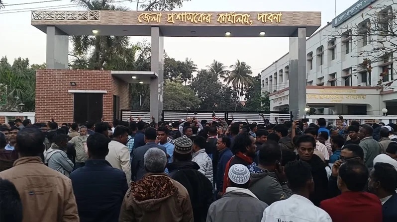 পাবনা-৩ ও ৪ আসনে ভোট পুনঃগণনার দাবিতে জেলা প্রশাসকের কার্যালয় ঘেরাও