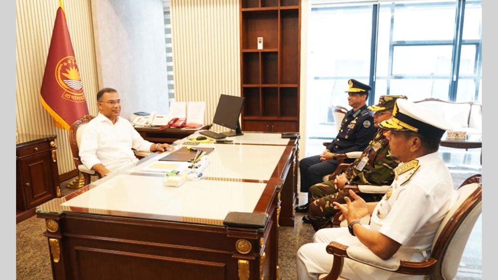 সচিবালয়ে পৌঁছে প্রথমেই গোয়েন্দা সংস্থার প্রধানদের সঙ্গে বৈঠক করেন প্রধানমন্ত্রী। পরে নিজ দফতরে তিন বাহিনীর প্রধানদের সঙ্গেও তিনি বৈঠকে বসেন।