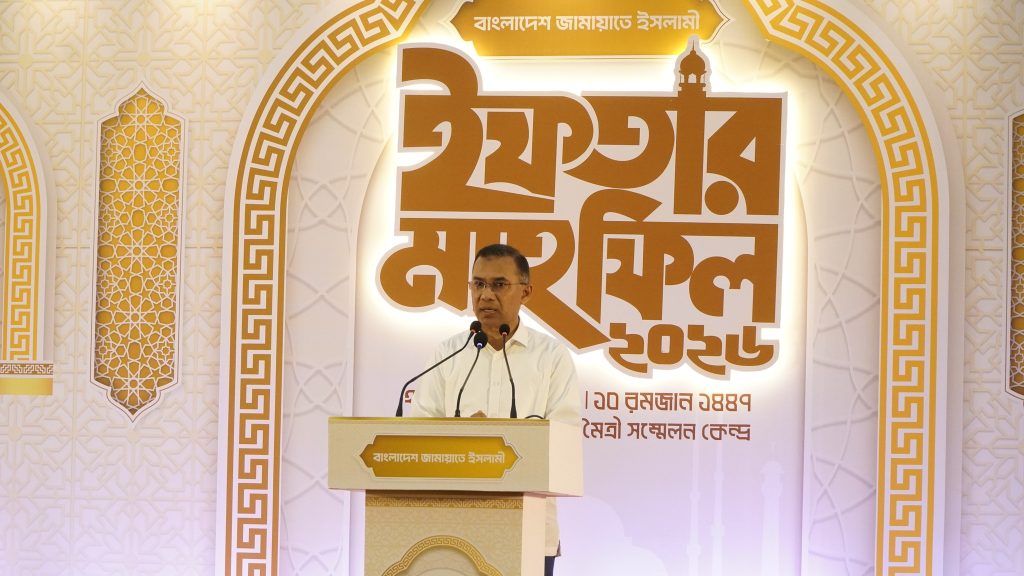 সংসদের প্রধান বিরোধী দল জামায়াতে ইসলামী আয়োজিত ইফতার মাহফিলে অংশ নিয়েছেন প্রধানমন্ত্রী তারেক রহমান। রাজধানীর বাংলাদেশ-চীন মৈত্রী সম্মেলন কেন্দ্রে শনিবার (২৮ ফেব্রুয়ারি) বিকেলে আয়োজিত এ অনুষ্ঠানে তাকে স্বাগত জানান জামায়াতের আমির ডা. শফিকুর রহমানসহ দলের শীর্ষ নেতারা।