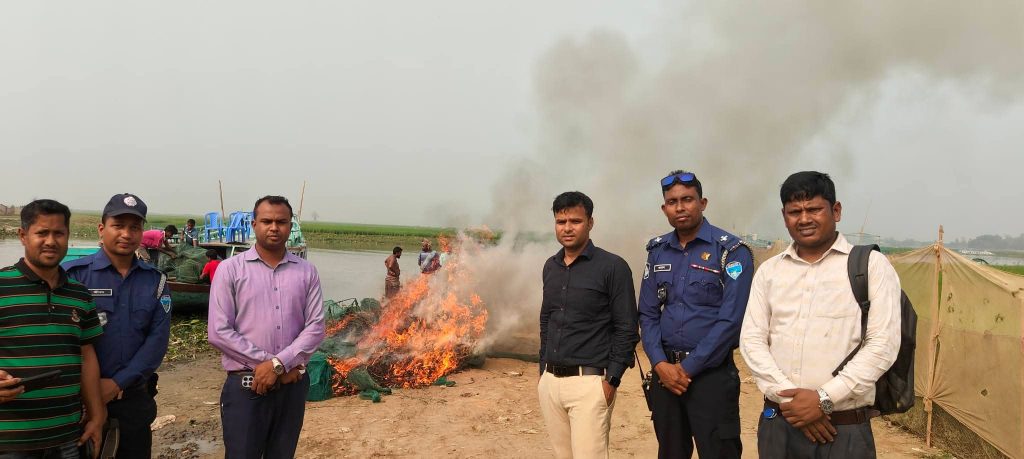বিষয়টি নিশ্চিত করে উপজেলা সিনিয়র মৎস্য কর্মকর্তা ফাহিমুল আরেফিন বলেন, দেশীয় প্রজাতির মাছ সংরক্ষণ এবং মৎস্য সংরক্ষণ আইন বাস্তবায়নের লক্ষ্যে নিয়মিত ভ্রাম্যমাণ আদালত পরিচালনা করে এসব নিষিদ্ধ জাল জব্দ করা হচ্ছে। বর্তমানে নদীতে পানি কম থাকায় দেশীয় প্রজাতির মাছ বিলুপ্তির ঝুঁকিতে রয়েছে। এ অবস্থায় একদল অসাধু ব্যক্তি নিষিদ্ধ চায়না দুয়ারী জাল ব্যবহার করে অবৈধভাবে মাছ শিকার করছে। এতে জলজ প্রাণী ও উপকারী জলজ কীটপতঙ্গ ক্ষতিগ্রস্ত হচ্ছে। তাই দেশীয় প্রজাতির মাছ সংরক্ষণ ও উন্নয়নে এ ধরনের অভিযান অব্যাহত থাকবে।