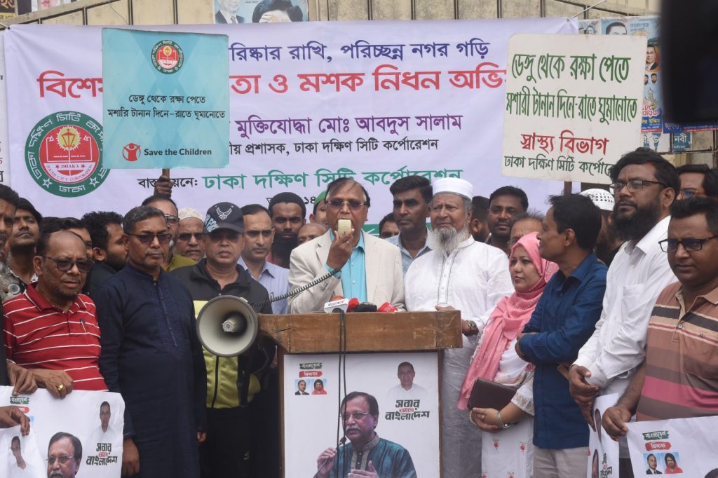 মাননীয় প্রধানমন্ত্রীর নির্দেশনা অনুযায়ী ডেঙ্গু প্রতিরোধে প্রতি শনিবার দেশব্যাপী পরিচ্ছন্নতা অভিযানের অংশ হিসেবে আজ রাজধানীর ধলপুরে ঢাকা দক্ষিণ সিটি কর্পোরেশন (ডিএসসিসি) বিশেষ পরিচ্ছন্নতা ও মশক নিধন অভিযান পরিচালনা করেছে। শনিবার সকালে ডিএসসিসি প্রশাসক বীর মুক্তিযোদ্ধা মোঃ আবদুস সালাম এই কর্মসূচির শুভ উদ্বোধন করেন।