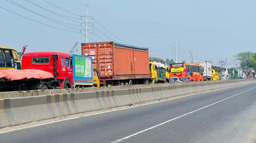 ঢাকা-চট্টগ্রাম মহাসড়কের নারায়ণগঞ্জ অংশে তীব্র যানজটের সৃষ্টি হয়েছে। লাঙ্গলবন্দ থেকে মেঘনা টোল প্লাজা পর্যন্ত চট্টগ্রামমুখী লেনে প্রায় ৭ কিলোমিটারজুড়ে যানজট ছড়িয়ে পড়ায় যাত্রী ও চালকরা চরম ভোগান্তিতে পড়েছেন।