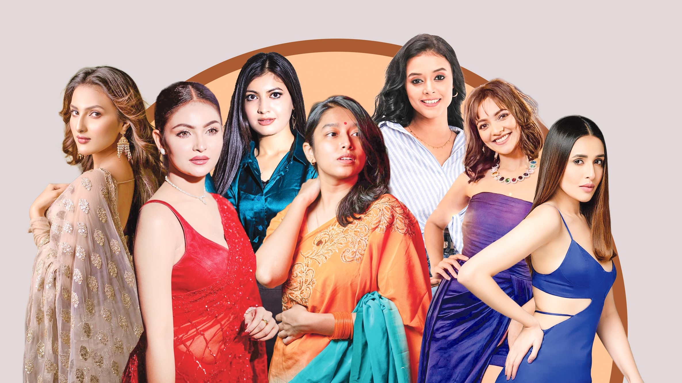 (বাঁ থেকে) জ্যোতির্ময়ী কুণ্ডু, মারিয়া শান্ত, সাদনিমা, মাশা ইসলাম, সাবরিন আজাদ, সুস্মিতা চট্টোপাধ্যায় ও স্নিগ্ধা চৌধুরী। ছবি: সংগৃহীত