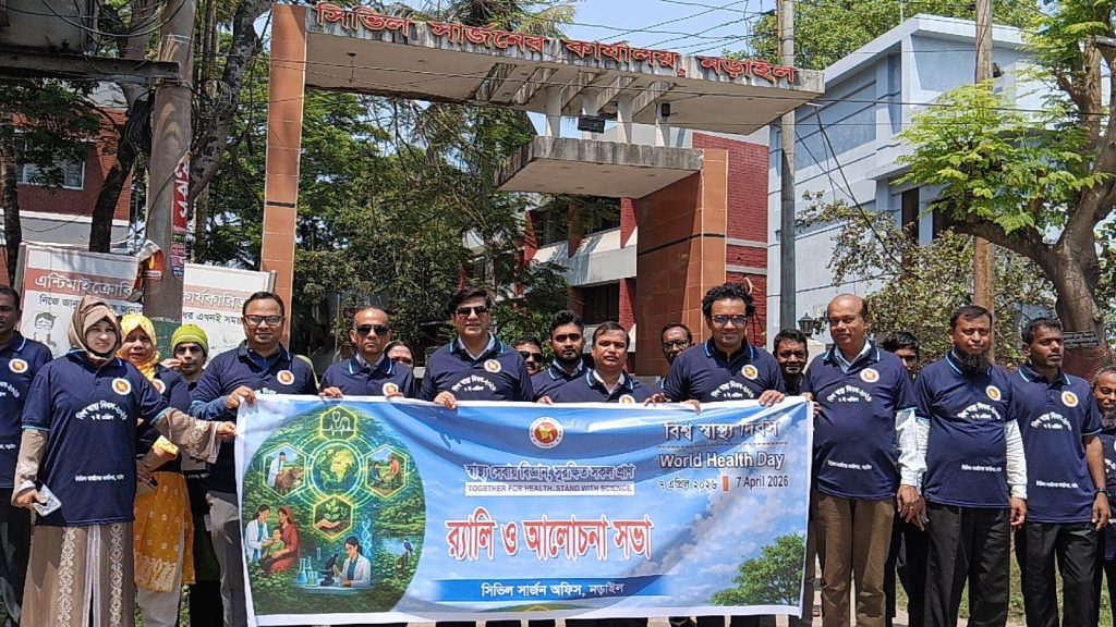 ‘স্বাস্থ্য সেবায় বিজ্ঞান, সুরক্ষিত সকল প্রাণ’ এ প্রতিপাদ্যকে সামনে রেখে নড়াইলে পালিত হয়েছে বিশ্ব স্বাস্থ্য দিবস। এ উপলক্ষ্যে মঙ্গলবার সকাল ১১ টায় সিভিল সার্জন অফিসের সামনে থেকে একটি র্যালী বের হয়ে শহরের প্রধান প্রধান সড়ক প্রদক্ষিণ করে একই স্থানে এসে শেষ হয়। পরে সিভিল সার্জন অফিসের সভাকক্ষে বিশ্ব স্বাস্থ্য দিবসের ওপর তাৎপর্যপূর্ণ আলোচনা সভা অনুষ্ঠিত হয়।