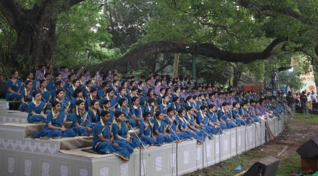 সকাল সোয়া ৬টায় শুরু হওয়া প্রভাতী এই অনুষ্ঠানে আপামর বাঙালির উপস্থিতিতে মুখর হয়ে ওঠে পুরো এলাকা। উদ্বোধনী সংগীতের পর পর্যায়ক্রমে পরিবেশিত হয় রবীন্দ্রনাথ ঠাকুরের ‘এ কী সুগন্ধহিল্লোল বহিল’, ‘তোমার হাতের রাখীখানি বাঁধো আমার দক্ষিণ হাতে’ এবং ‘বাজাও আমারে বাজাও’সহ বিভিন্ন গান।