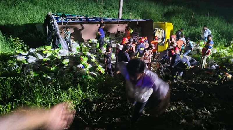 প্রাথমিকভাবে জানা গেছে, ট্রাকটির ওপর থাকা ১৩ জন যাত্রী দুর্ঘটনার সময় ট্রাকের নিচে চাপা পড়ে। এতে ঘটনাস্থলেই সাতজন নিহত হন এবং আহত হন ছয়জন।