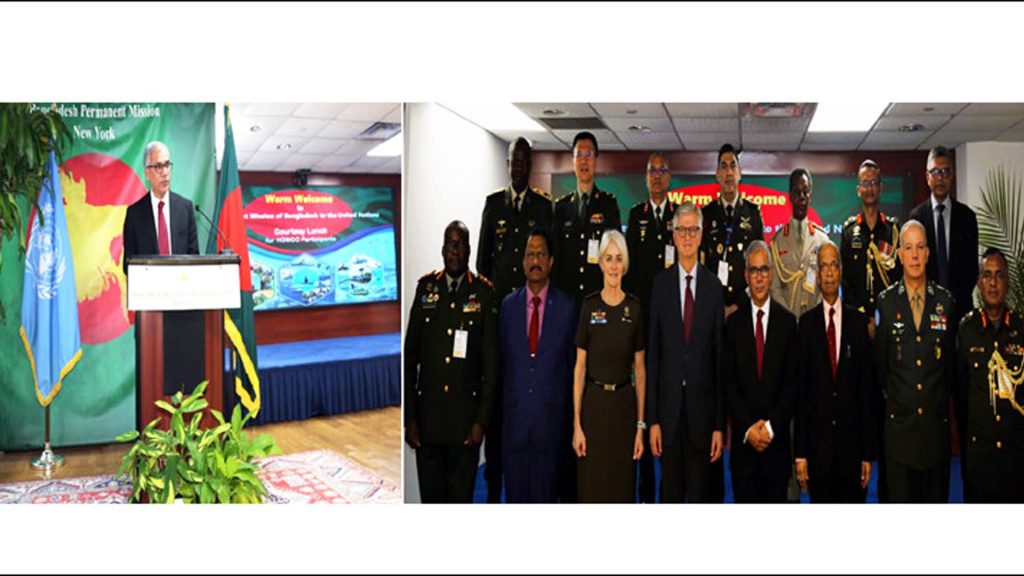 জাতিসংঘে বাংলাদেশের স্থায়ী মিশনের উদ্যোগে শান্তিরক্ষা মিশনে দায়িত্ব পালনরত ফোর্স কমান্ডার ও হেডস অব মিলিটারি কম্পোনেন্টদের সম্মানে এক মধ্যাহ্নভোজের আয়োজন করা হয়েছে।