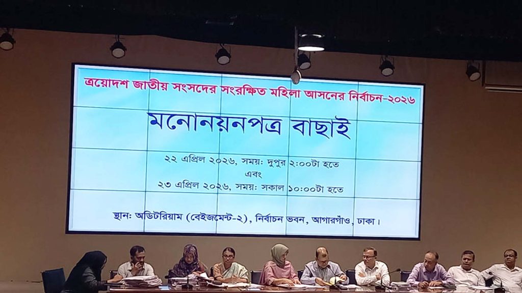 বৃহস্পতিবার সকালে রাজধানীর আগারগাঁওয়ে নির্বাচন ভবনের মিলনায়তনে সংরক্ষিত নারী আসনের নির্বাচনের মনোনয়নপত্র বাছাইয়ের শেষ দিনে এ সিদ্ধান্ত জানানো হয়। এর মধ্য দিয়ে দুদিনব্যাপী মনোনয়নপত্র যাচাই-বাছাই কার্যক্রম সম্পন্ন হয়।
