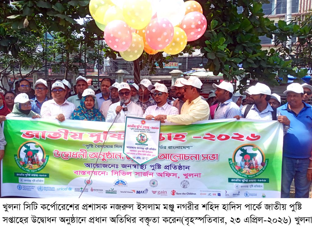 অনুষ্ঠানে প্রধান অতিথি ছিলেন খুলনা সিটি কর্পোরেশনের প্রশাসক নজরুল ইসলাম মঞ্জু। জাতীয় পুষ্টি সপ্তাহের এবারের প্রতিপাদ্য ‘পুষ্টি বৈষম্যের দিন শেষ, গড়বো স্বনির্ভর বাংলাদেশ’।