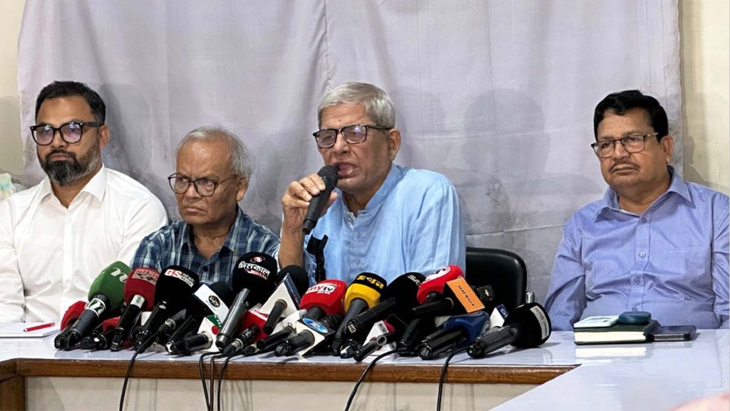মির্জা ফখরুল আরও বলেন, জামায়াতে ইসলামীর আমিরের এই বক্তব্য বিএনপি শুধু প্রত্যাখ্যানই করছে না, বরং এর তীব্র নিন্দাও জানাচ্ছে। তিনি বলেন, ‘৫ আগস্টের পর আমরা গণতন্ত্রকে প্রাতিষ্ঠানিক রূপ দেওয়ার যে সুযোগ পেয়েছি, একটি বিশেষ পক্ষ বারবার বিভ্রান্তি ছড়িয়ে সেই সুযোগ নষ্ট করার চেষ্টা করছে। তারা দেশকে আবারও স্বৈরাচারের দিকে ঠেলে দিতে চায় কি না—তা দেশবাসীকে ভেবে দেখতে হবে।’